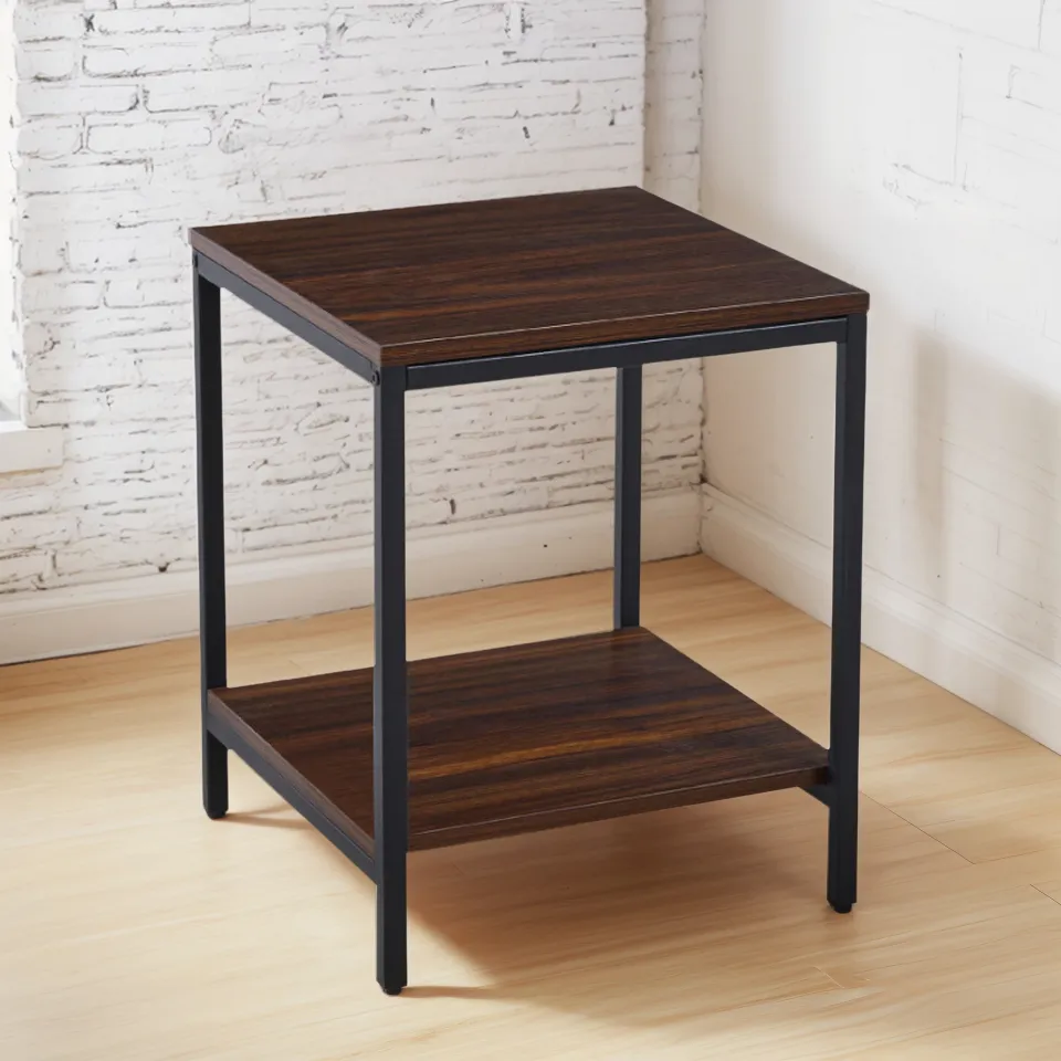 Mesa Auxiliar Lateral de 2 Niveles – Madera Oscura