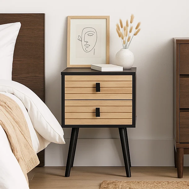 Velador Cajón Doble Minimal Oscuro 2.0