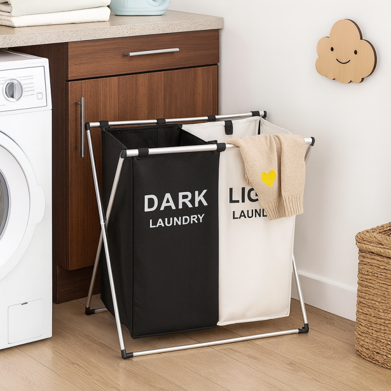 Dos compartimientos para separar ropa clara y oscura