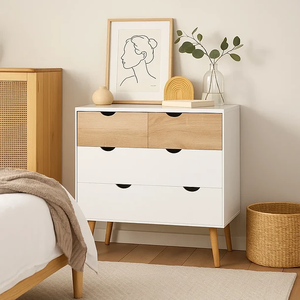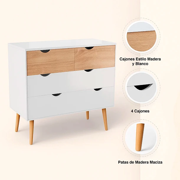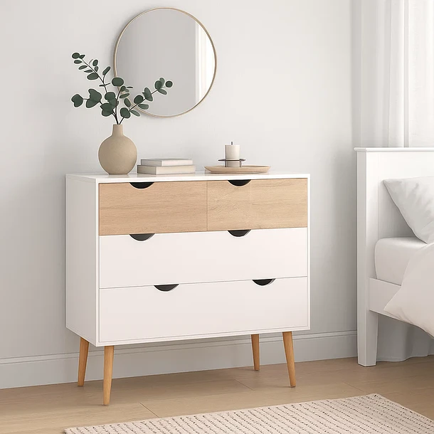 Cómoda 4 cajones blanca madera MDF