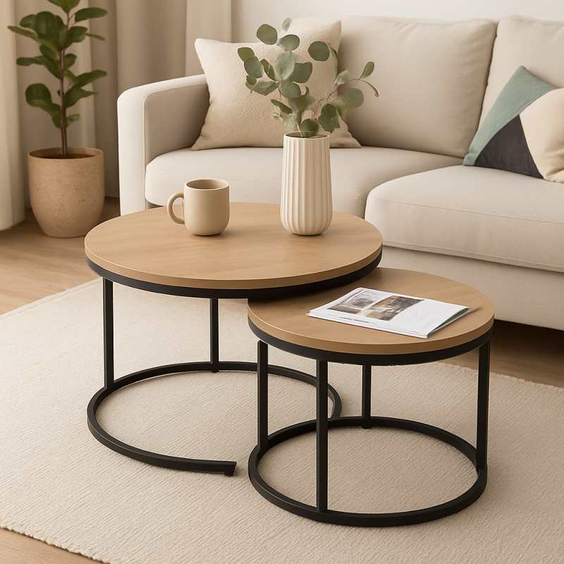 Ya sea que estés disfrutando de momentos de relajación con una taza de té o recibiendo a amigos y familiares, nuestro juego de mesas de centro anidadas con diseño de madera añadirá un toque de calidez y sofisticación a tu hogar. Eleva tu espacio de estar a un nivel superior con estas mesas de centro que son más que muebles, son una declaración de estilo intemporal.
