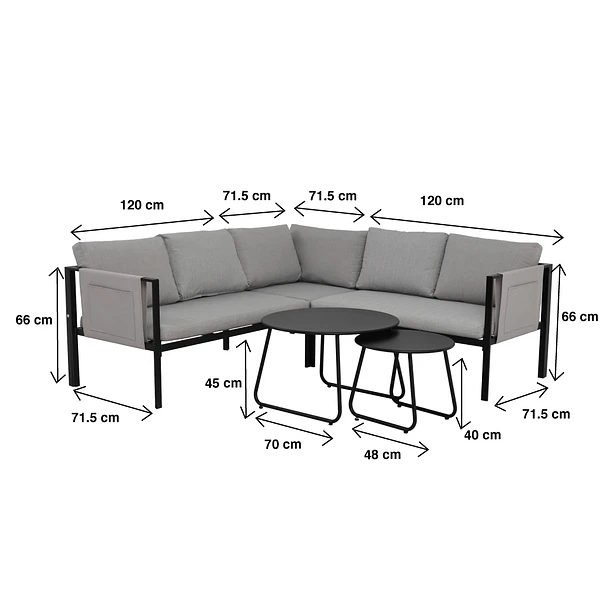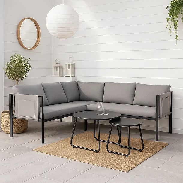 Juego de Terraza Soho 3 Sofás Esquineros Grises y 2 Mesas de Centro