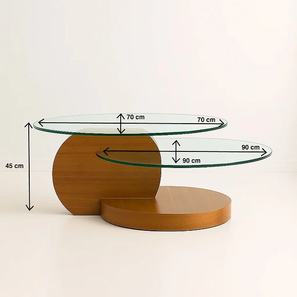 Mesa de Centro DuoGlass con Bases de Madera y Superficie de Vidrio