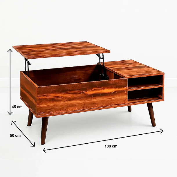 Mesa de Centro elevable con bandeja y almacenamiento - Madera