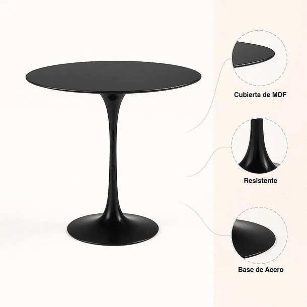 Transforma tu espacio con la elegancia contemporánea de la Mesa de Comedor Tulip en color negro. Su diseño moderno y minimalista aporta un toque sofisticado a tu comedor. Fabricada con materiales de alta calidad, la mesa presenta líneas limpias y un acabado en negro que añade un elemento audaz y versátil a tu decoración. Ideal para reuniones familiares o cenas formales, la Mesa de Comedor Tulip en negro ofrece durabilidad y estilo atemporal. Dale a tu hogar un toque de modernidad con esta pieza que combina funcionalidad y diseño. ¡Adquiere ahora la Mesa de Comedor Tulip en negro y haz de tus comidas una experiencia única!