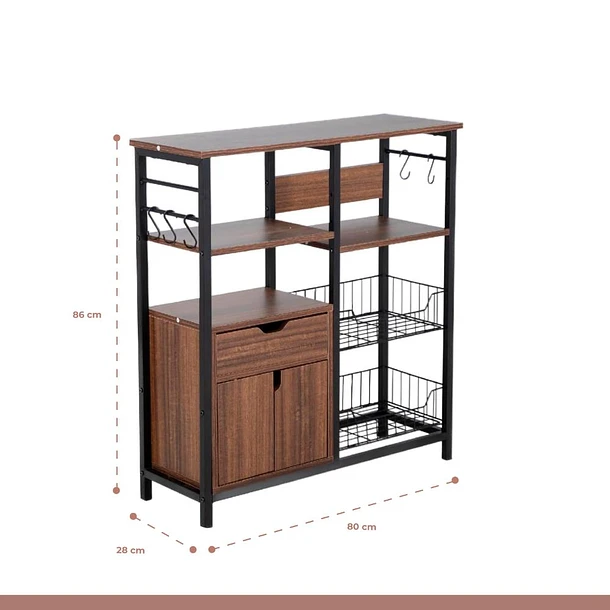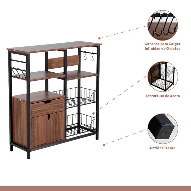 Rack organizador alto con cajón para cocina
