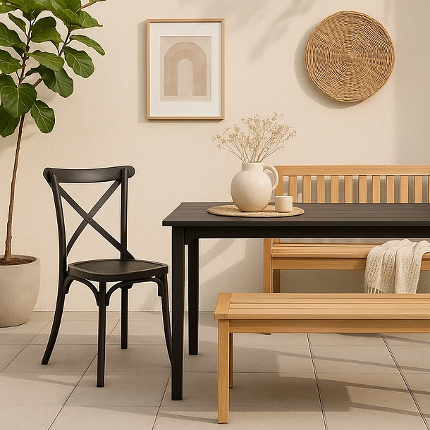 - Versatilidad decorativa: Su estilo moderno y líneas limpias complementan desde comedores clásicos hasta terrazas contemporáneas.