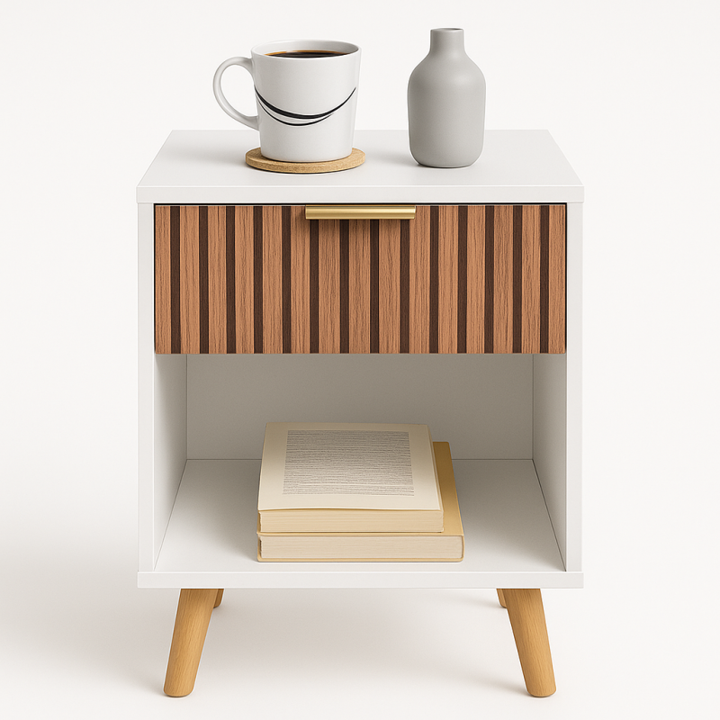 El Velador Toulouse Blanco / Madera combina un diseño moderno y natural ideal para cualquier dormitorio o sala de estar. Su estructura en melamina blanca con detalles en tono madera aporta un estilo nórdico y acogedor, mientras que su práctico cajón superior y compartimento inferior permiten mantener el orden y la organización de manera sencilla.